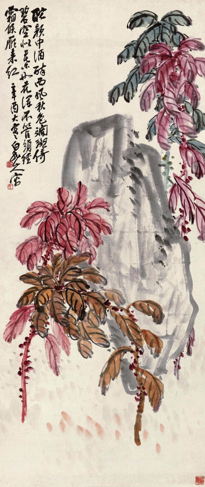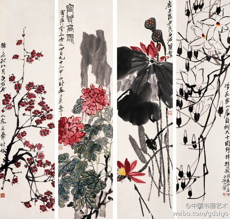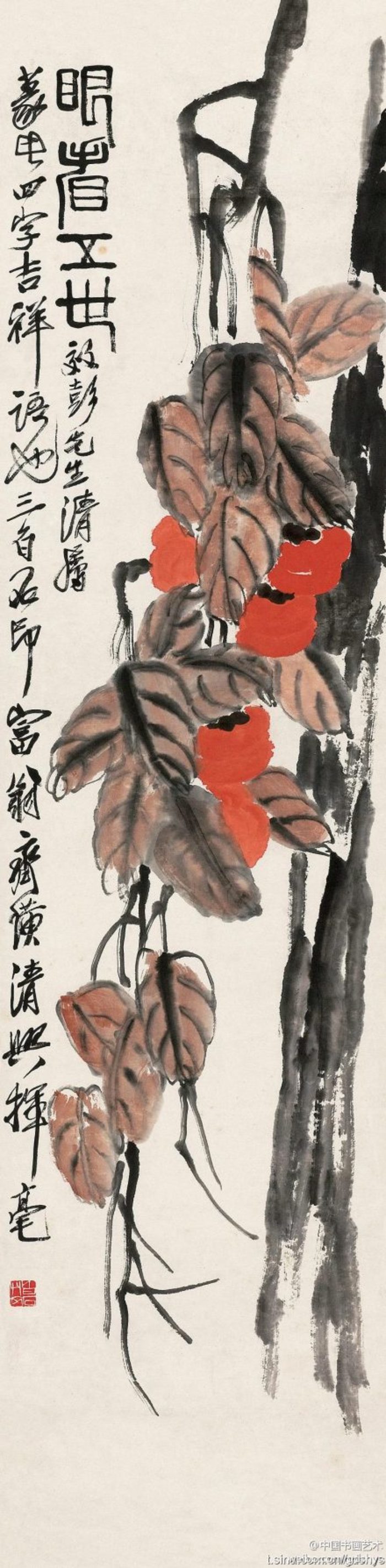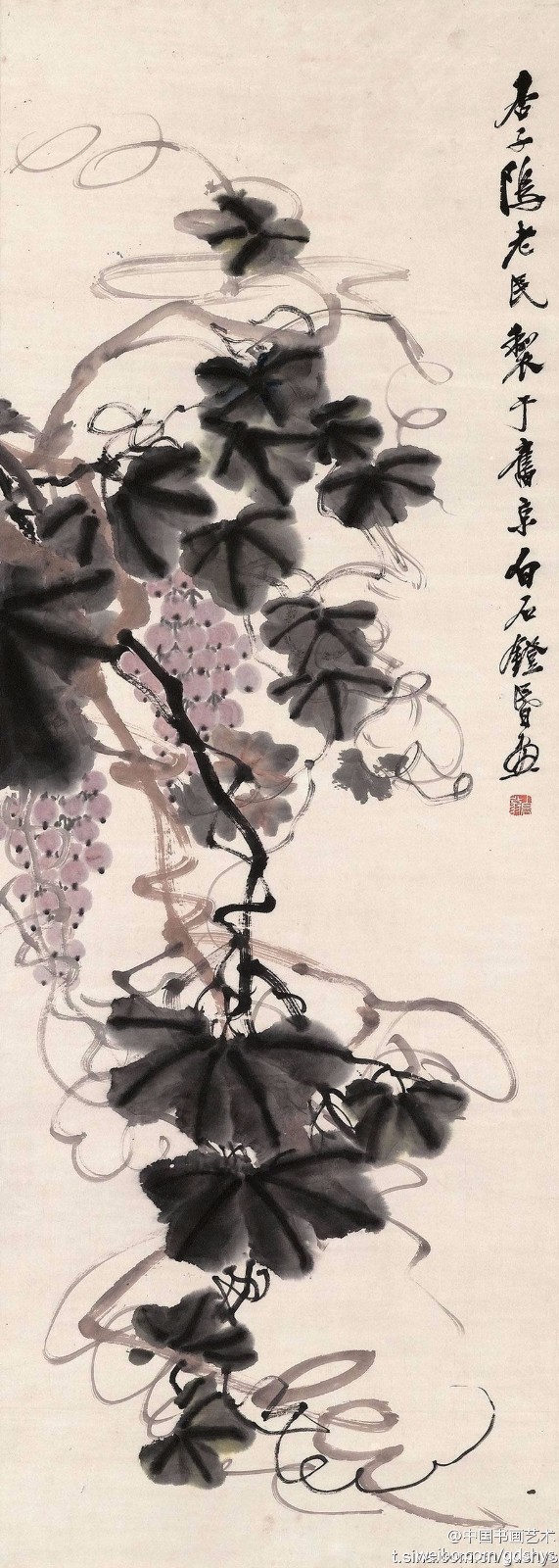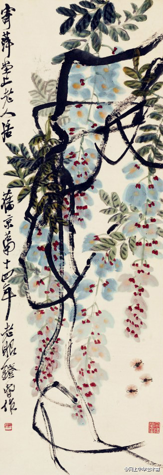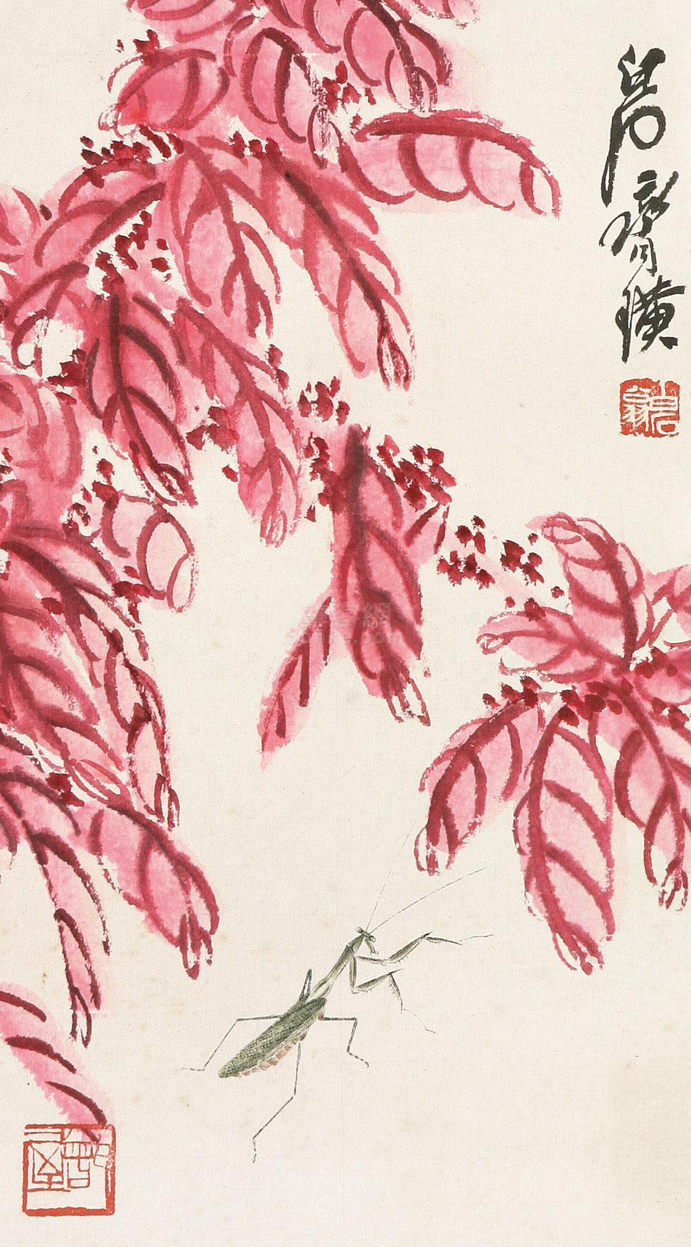 白石在北京定居后,内心却是“故里山花此时开也”,的思想轨迹。齐白石不可能将家乡草木赶过黄河带到北京,但家乡草木却作为一种自然信息随齐白石来到北京,并化作艺术信息传达出来,以实现齐白石心理的平衡。齐白石刻了许多寄托着怀乡之情的闲文印,如“吾家衡岳山下”、“客中月光亦照家山”,是齐白石自抒胸臆的第一主题。