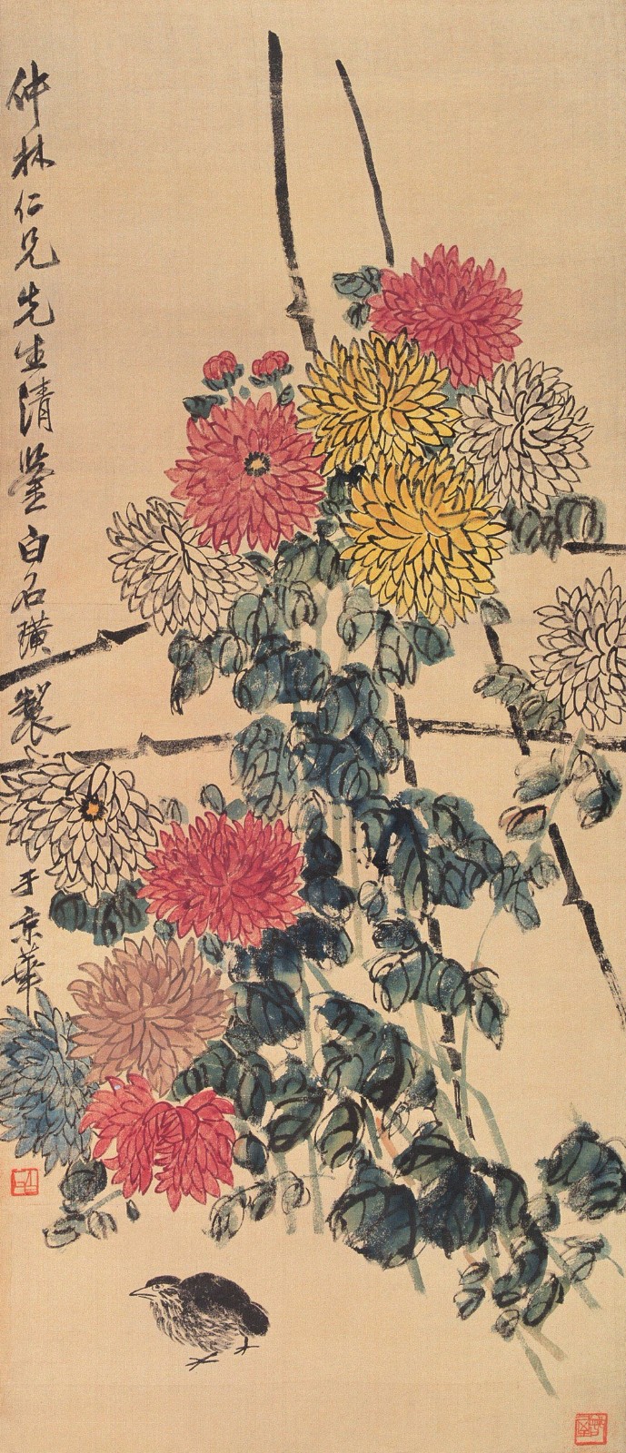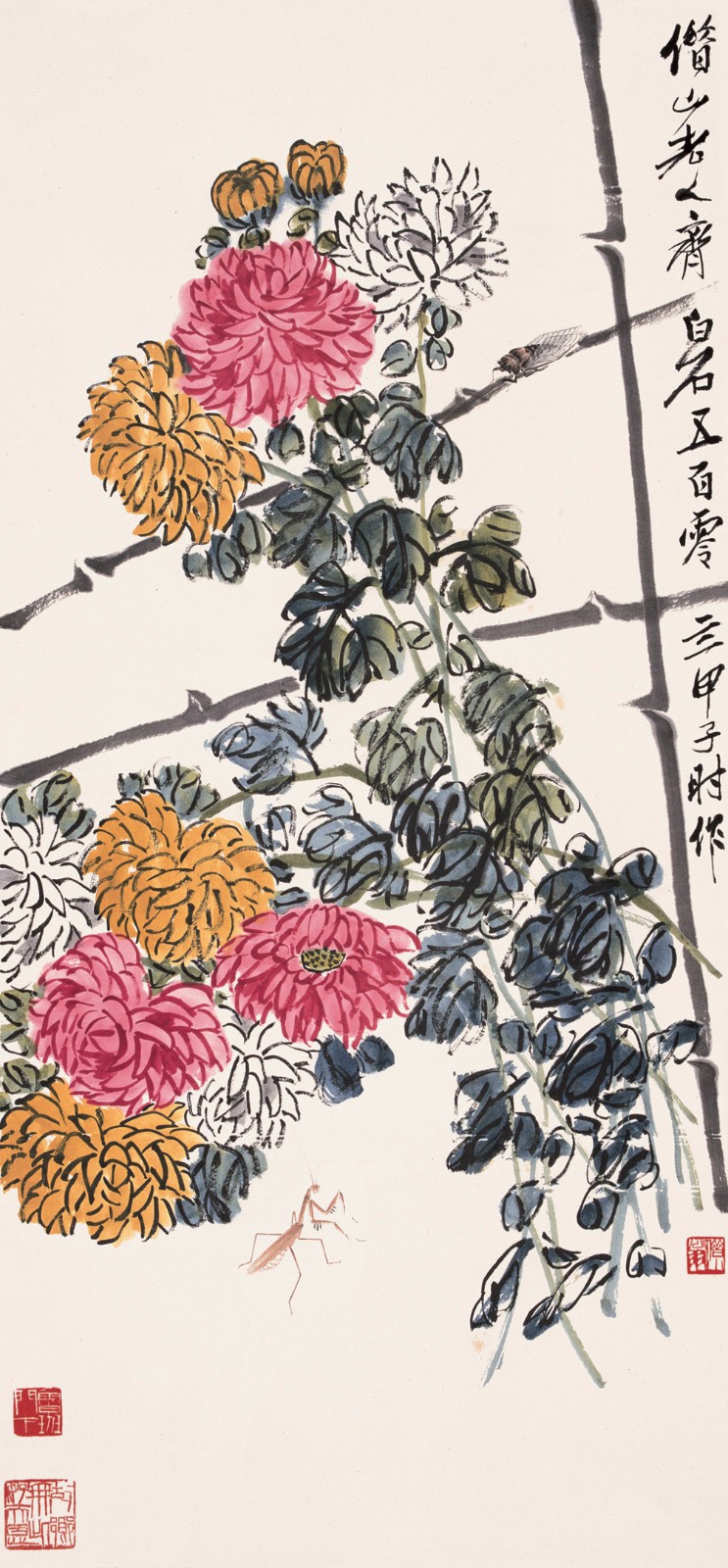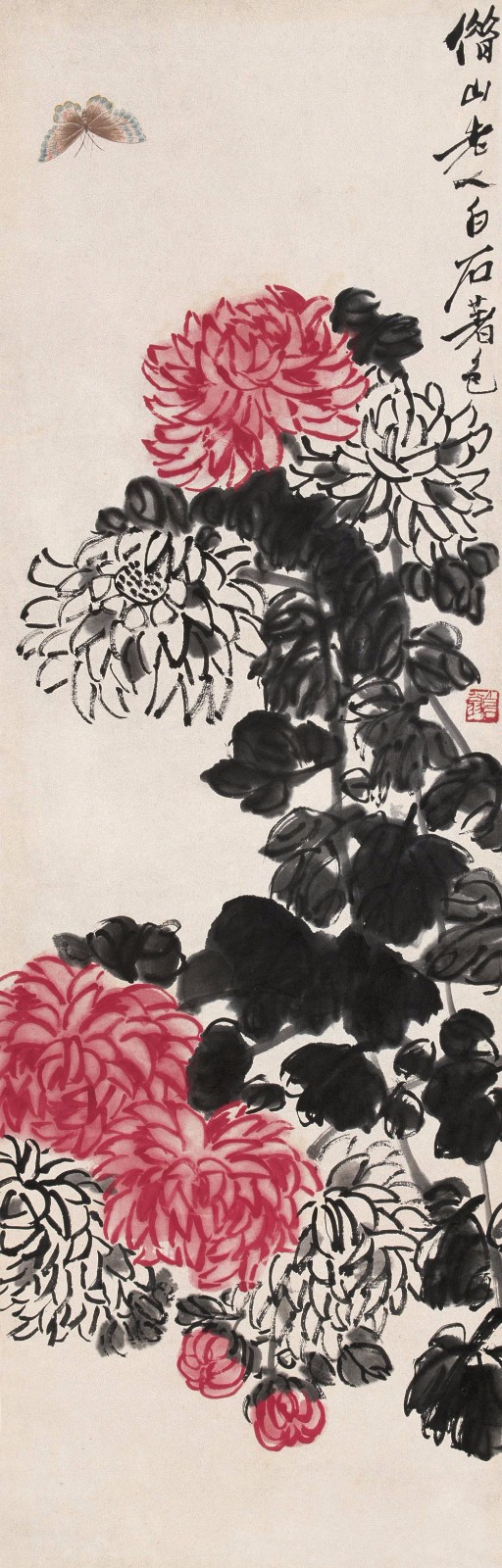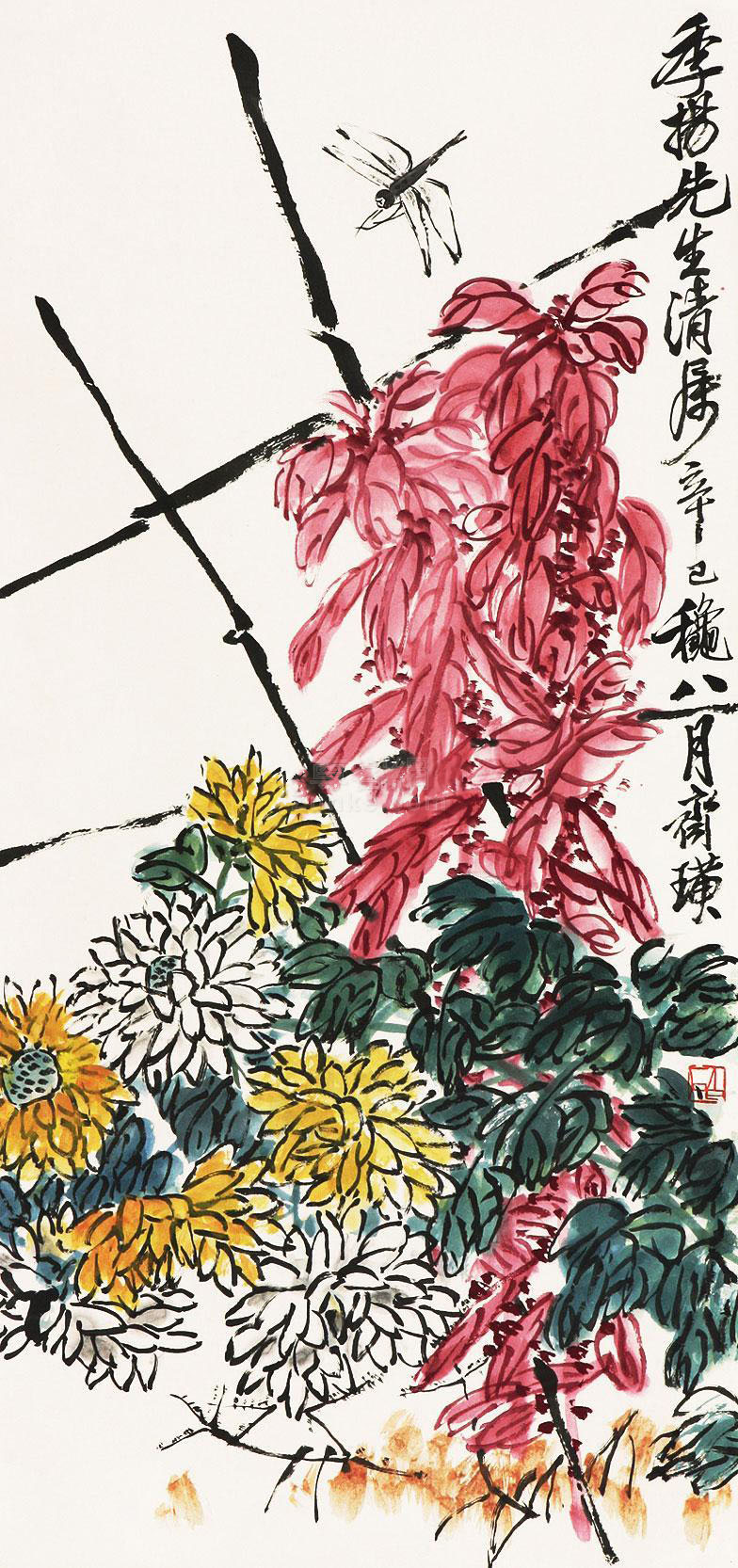 齐白石写了许多的怀乡诗,如:“登高时近倍思乡,饮酒簪花更断肠,寄语南飞天上雁,心随君侣到星塘。”又如“饱谱尘世味,夜夜梦星塘”、“此时正是梅开际,老屋檐前花有无”,这些诗句是齐白石“夜不安眠”、“枕上愁余”时所些的肺腑之语。变法和着变意,变意和着变法,乡心伴着童心,童心也总念乡心。