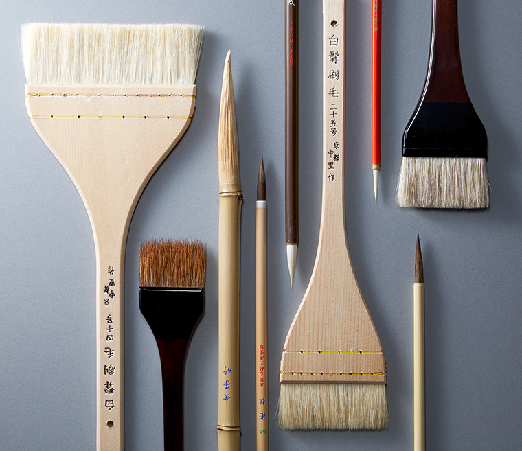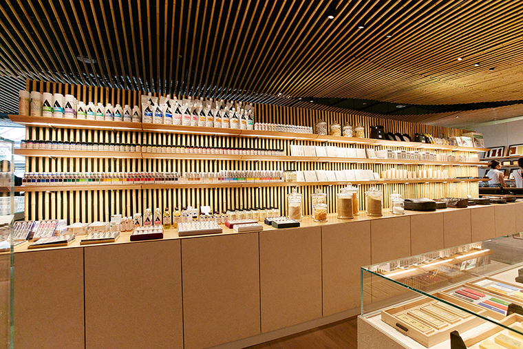 日本向来以完整保存传统文化著称,一方面,为了保存这些古早的创作工具,另一方面,也为热衷于传统创作方法的艺术家们提供便利的工具购买场所。一家提供保管服务的公司寺田仓库(warehouse terrada)为此专门开了一间画具研究室 “pigment”,位于东京品川区。他们将搜集到的传统画具以及现代绘画材料陈列起来并出售。仅仅是和纸、颜料和墨水等材料就超过 4000 种。