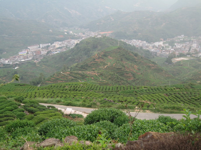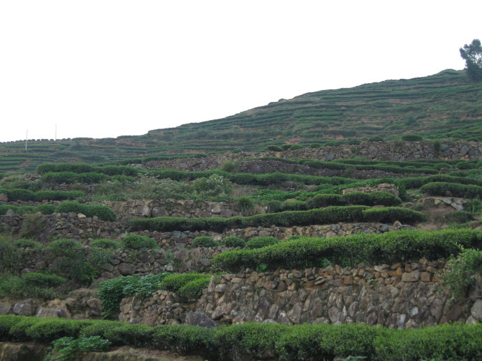 一路盘山而上,沿途全是一座座连绵不断的茶叶梯田。