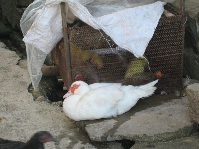 鸭妈妈泰然自诺的守护着鸭宝宝,呵呵……