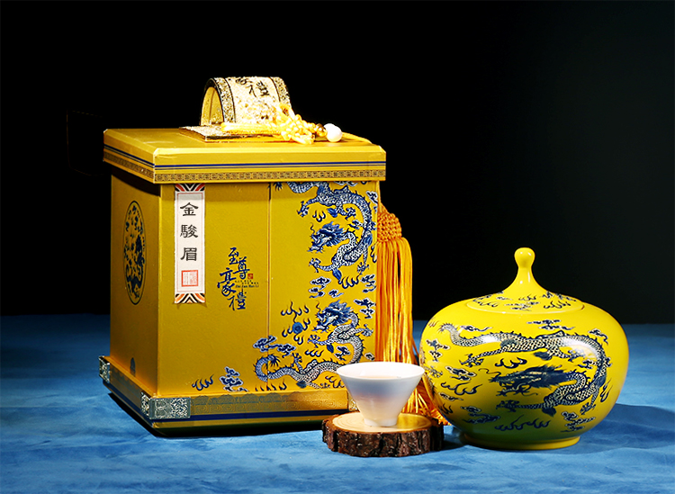 金骏眉,本就是富贵高雅的象征,至尊豪礼,走的便是高端路线。富贵的金色配以栩栩如生的青龙,整个礼盒除大气端庄之外,更有一股上位者才有的霸气散发出来,倘若您有这样一位霸气的朋友,送上这份厚礼更显真挚的情意。