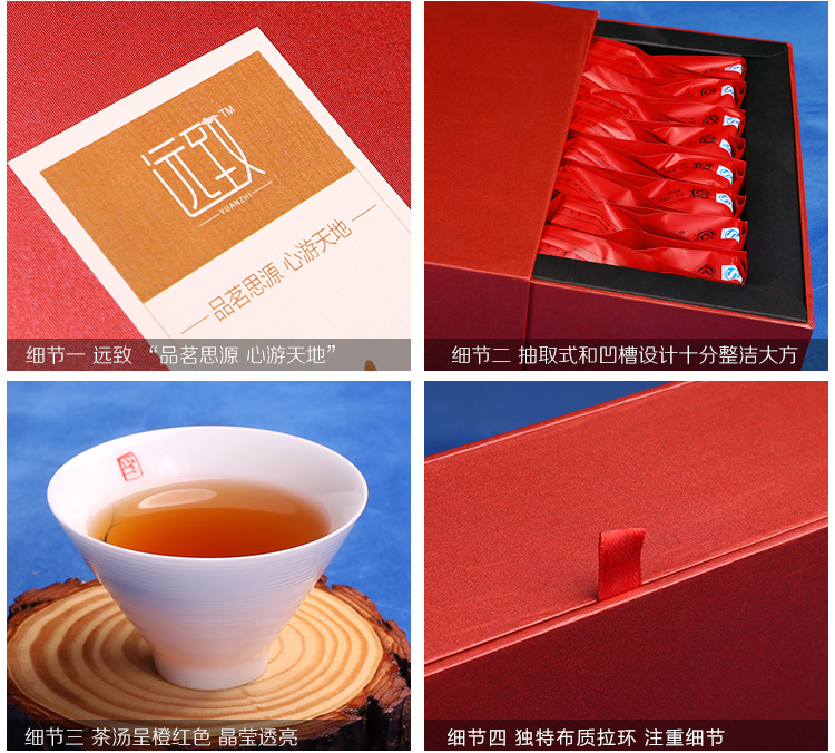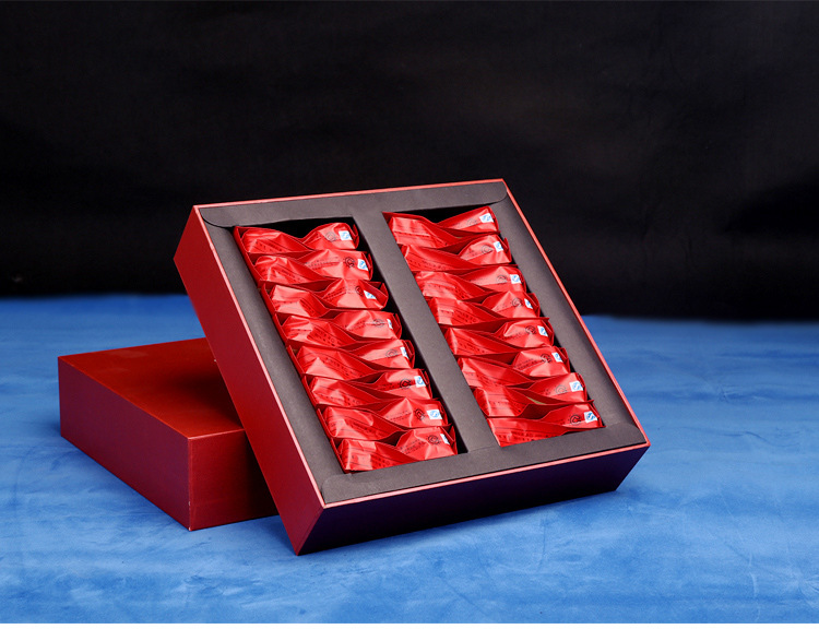 来自武夷山的经典好茶,手工采摘,精选原料,风味独特。喜庆的中国红,象征吉祥如意。抽取式凹槽设计,让茶叶显得简洁大方。加厚型提袋,更有质感,凸显高端气质,是送礼的上佳之选。